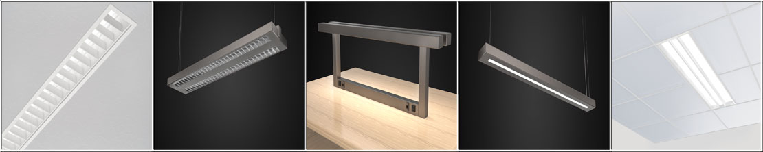 Wall slot, cove lights, linear recessed, surface and pendent direct, indirect and direct/indirect