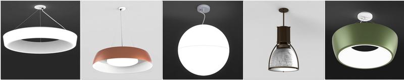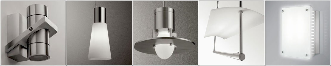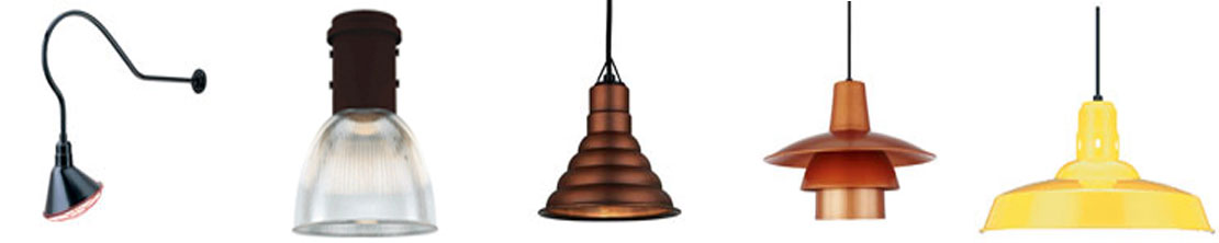 Contemporary sconces, pendants and ceiling mounted luminaires with an industrial appearance