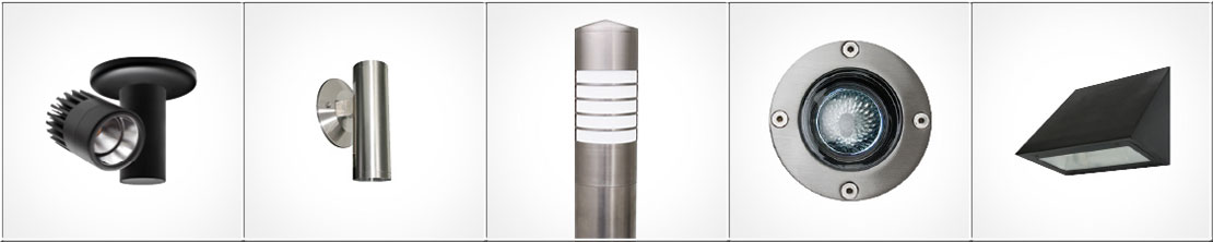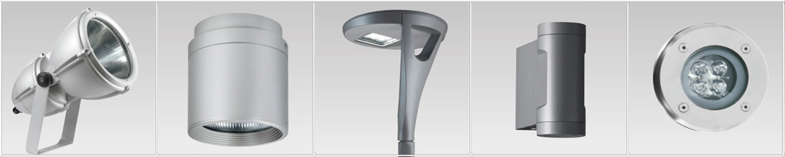 Cast aluminum wall shapes, floods, bollards and downlights in LED, HID and fluorescent sources