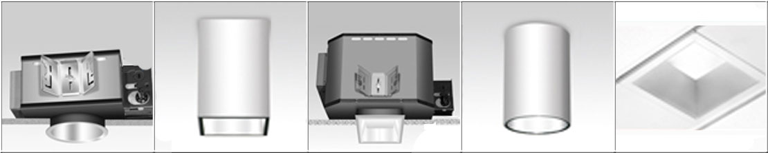 Recessed downlights, cylinders, stainless steel exterior products and lighted handrail