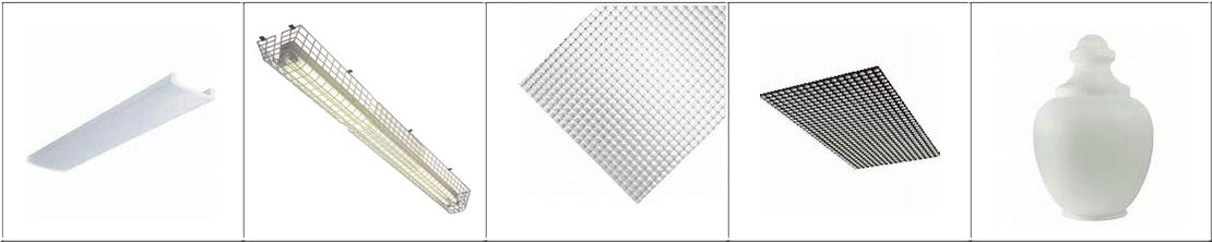 Acrylic and aluminum louvers as well as replacement lenses, spheres, globes, tube guards and wire guards