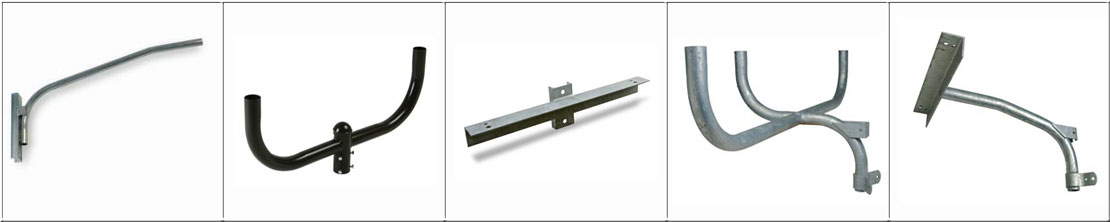 Pole and building mounted brackets, bullhorns, fitters and accessories
